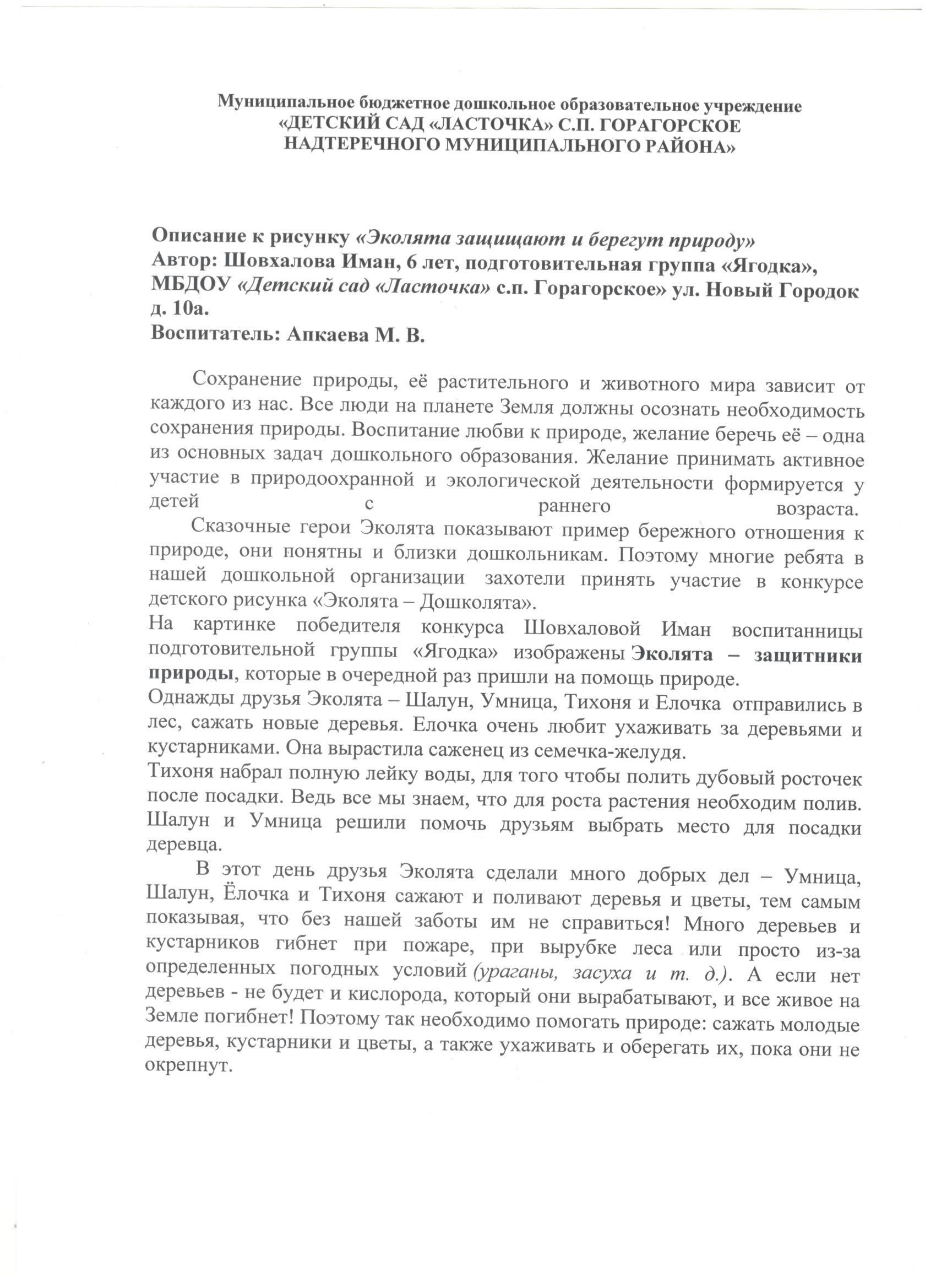 Муниципальное бюджетное дошкольное образовательное учреждение «Детский сад «Ласточка» с.п. Горагорское Надтеречного муниципального района».