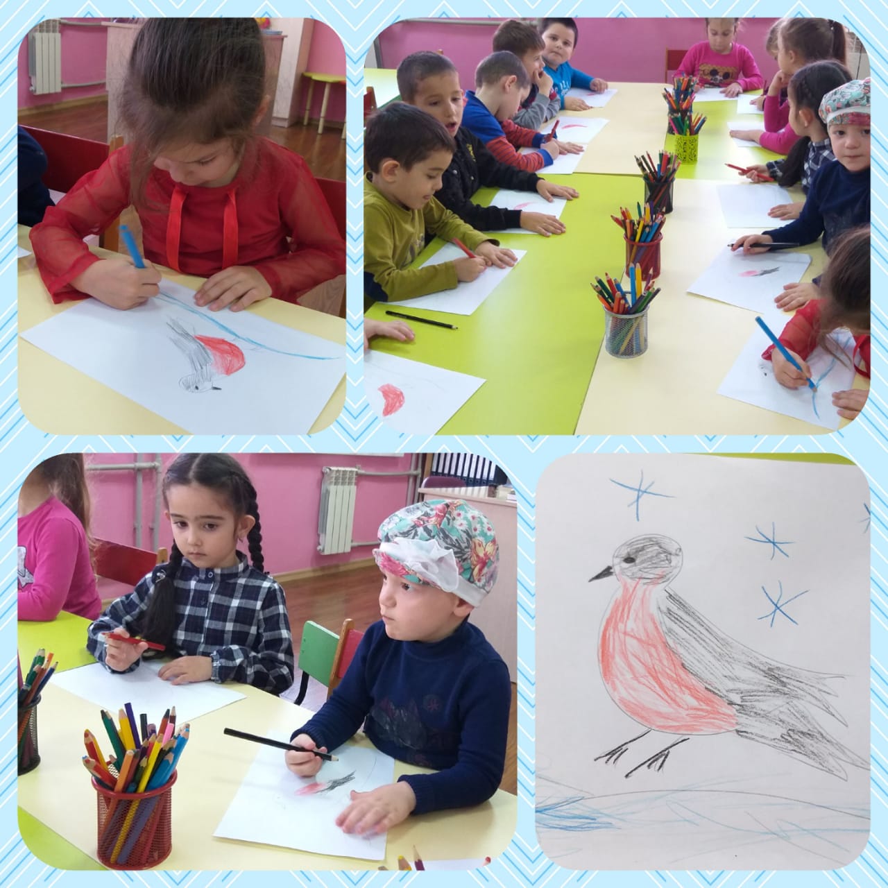 Художественно-эстетическое развитие, на тему: "Птицы синие и красные".
