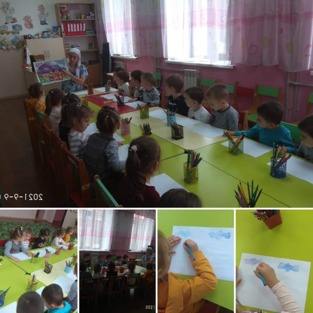 Младшая группа "Ромашка" Худ.эст.развитие (рисование) на тему: "Дождик"